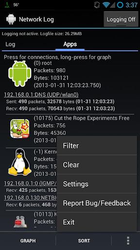 Puede descargar en Google Play, o acceder al código fuente en : https://github.com/pragma-/networklog.